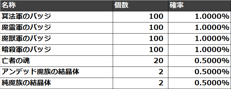 ※排出アイテムは重複して同一のアイテムが出現する場合がございます。
