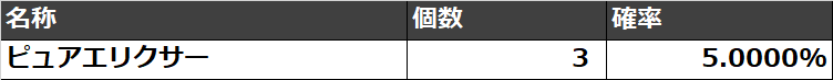 ※入手アイテムごとに個別に表示している入手確率は、表示のためすべて合算しても100%にならない場合がございます。