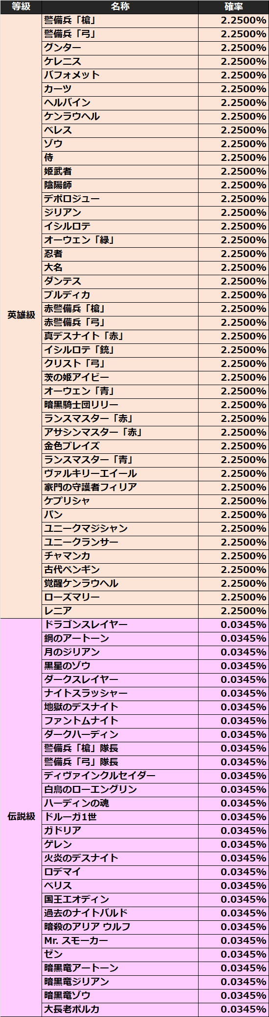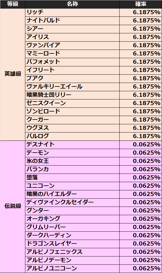 ※排出アイテムの入手確率は確率商品の種類によって異なります。