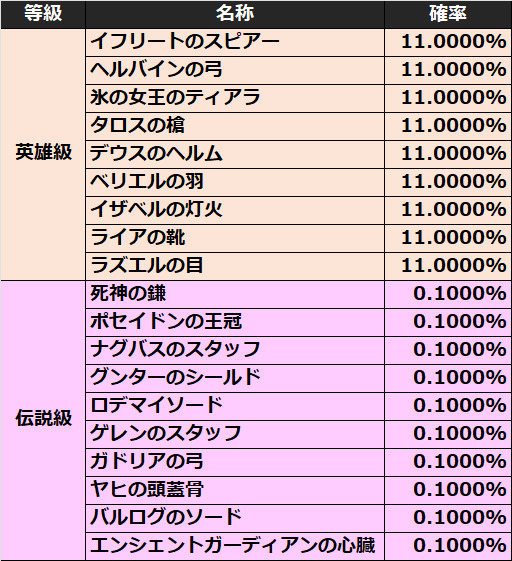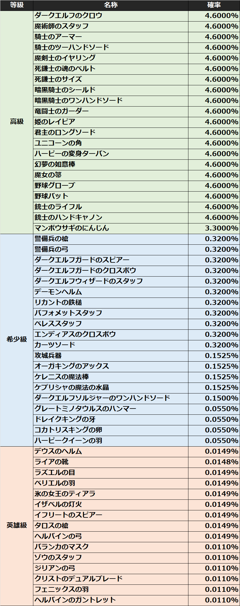 ※排出アイテムは重複して同一のアイテムが出現する場合がございます。
