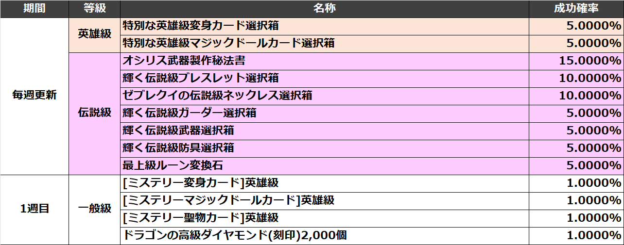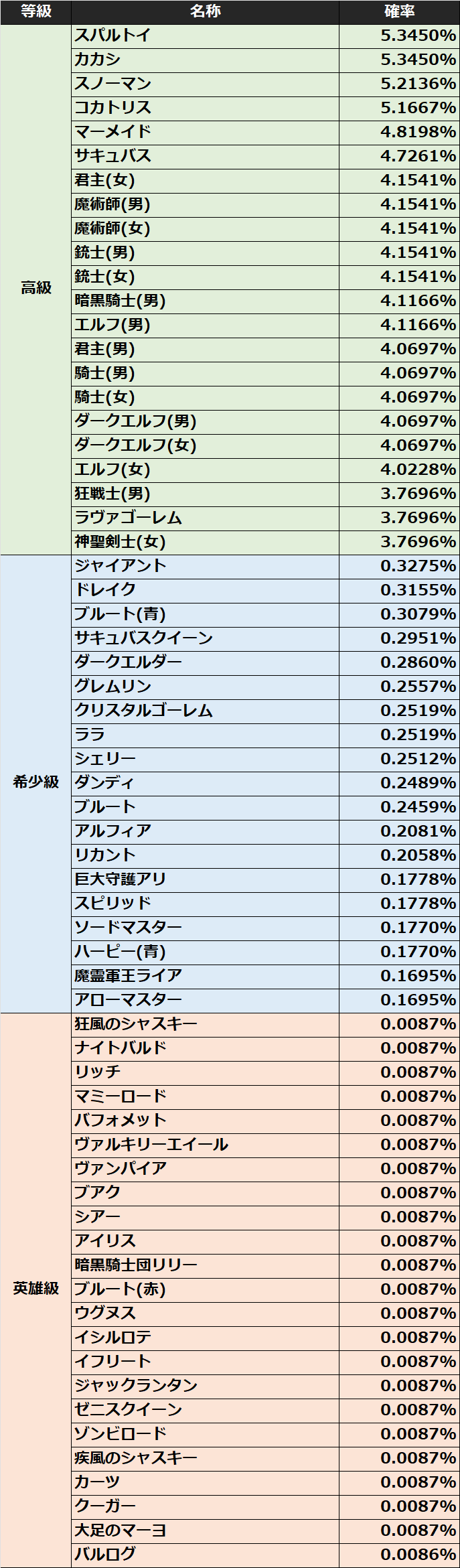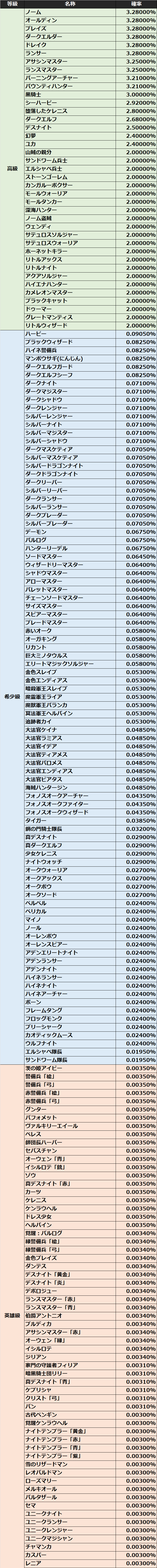 ※入手アイテムごとに個別に表示している入手確率は、表示のためすべて合算しても100%にならない場合がございます。