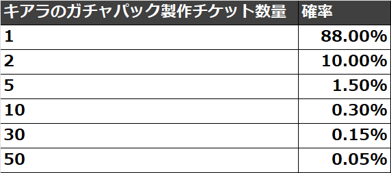 ※確率商品は1回排出するごとに確率表記に基づいて抽選を行います。そのため、入手確率1%のアイテムが100回中1回、必ず排出される仕組みではございません。