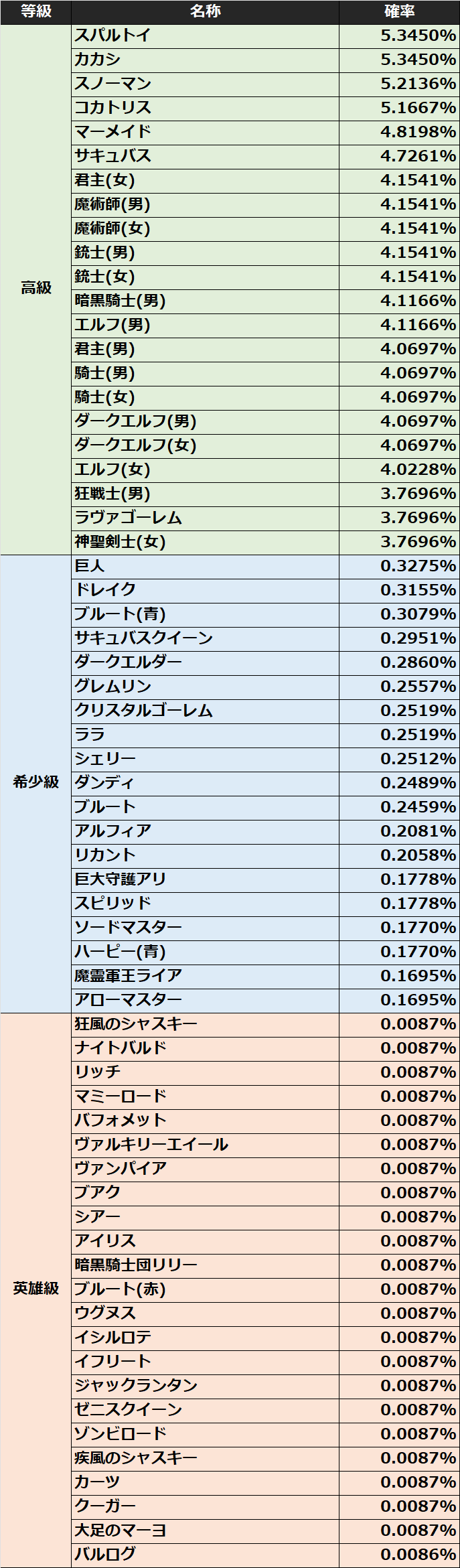 ※入手アイテムごとに個別に表示している入手確率は、表示のためすべて合算しても100%にならない場合がございます。