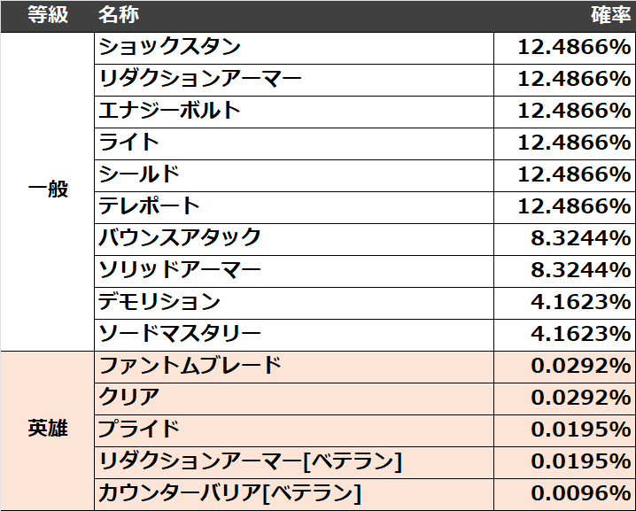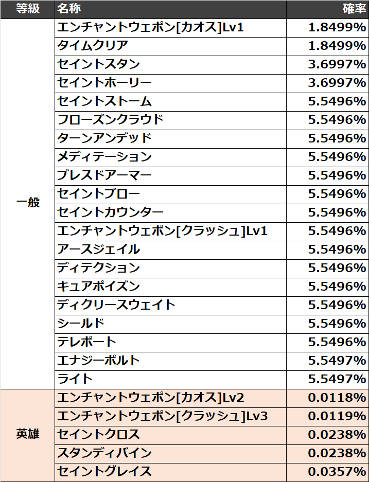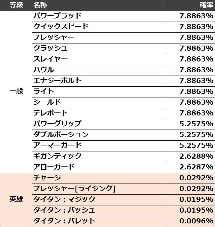 ※入手アイテムごとに個別に表示している入手確率は、表示のためすべて合算しても100%にならない場合がございます。