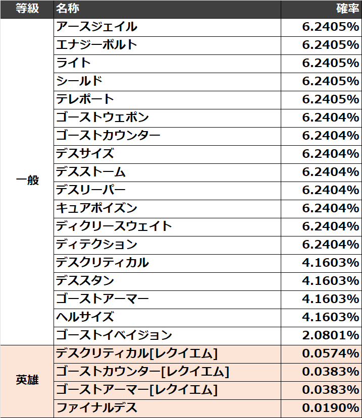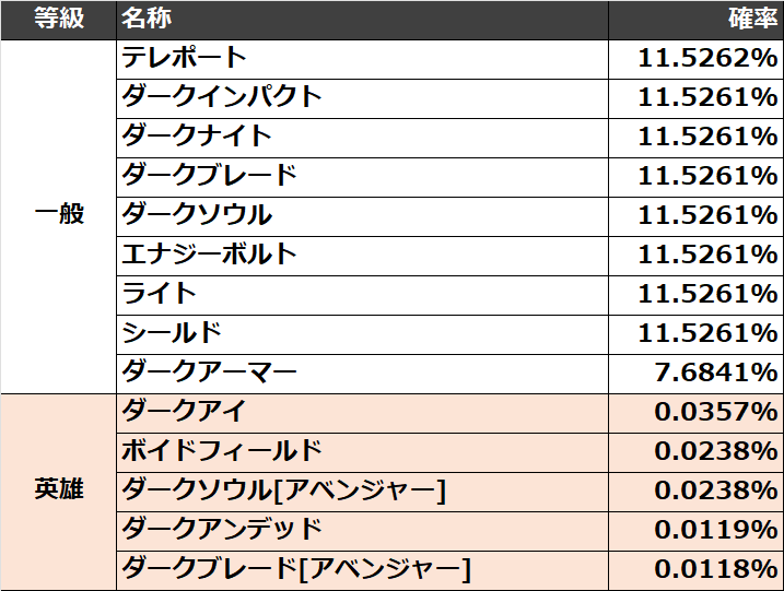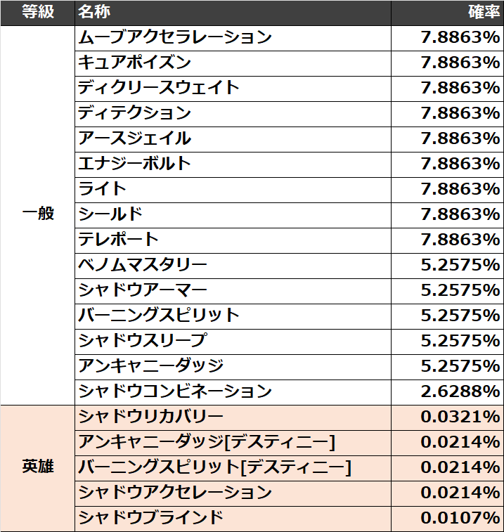 ※排出アイテムの入手確率は確率商品の種類によって異なります。