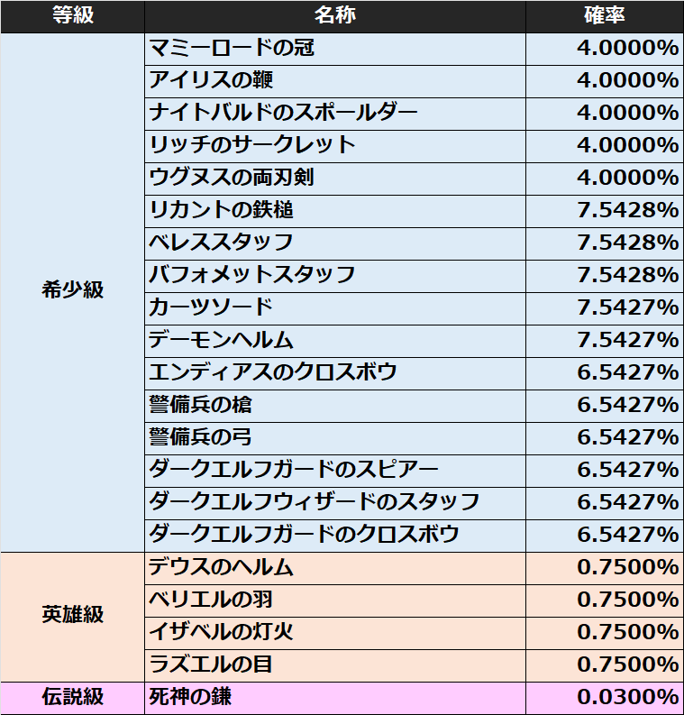 ※排出アイテムは重複して同一のアイテムが出現する場合がございます。