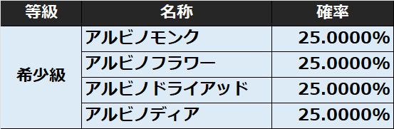 ※入手アイテムごとに個別に表示している入手確率は、表示のためすべて合算しても100%にならない場合がございます。